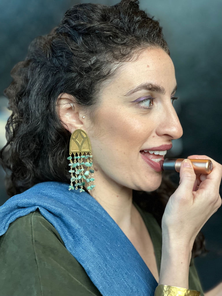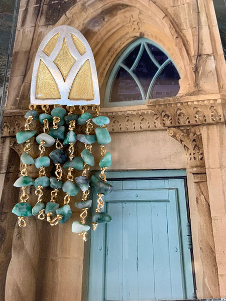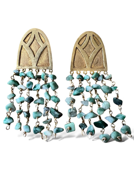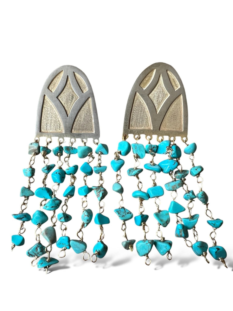 Special collection of vintage doors earrings handmade out of sterling silver and 18k gold plating, finished with African turquoise stones worked individually with gold plated wires.